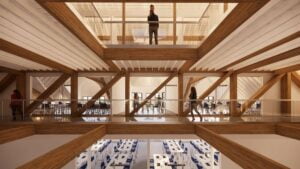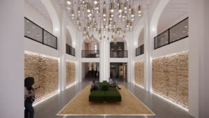 A new central elevator will replace one of the stair