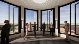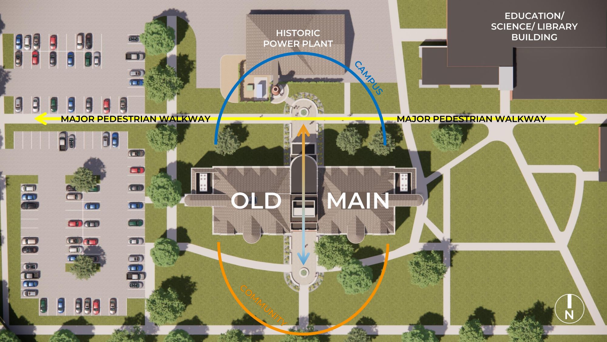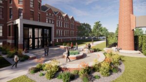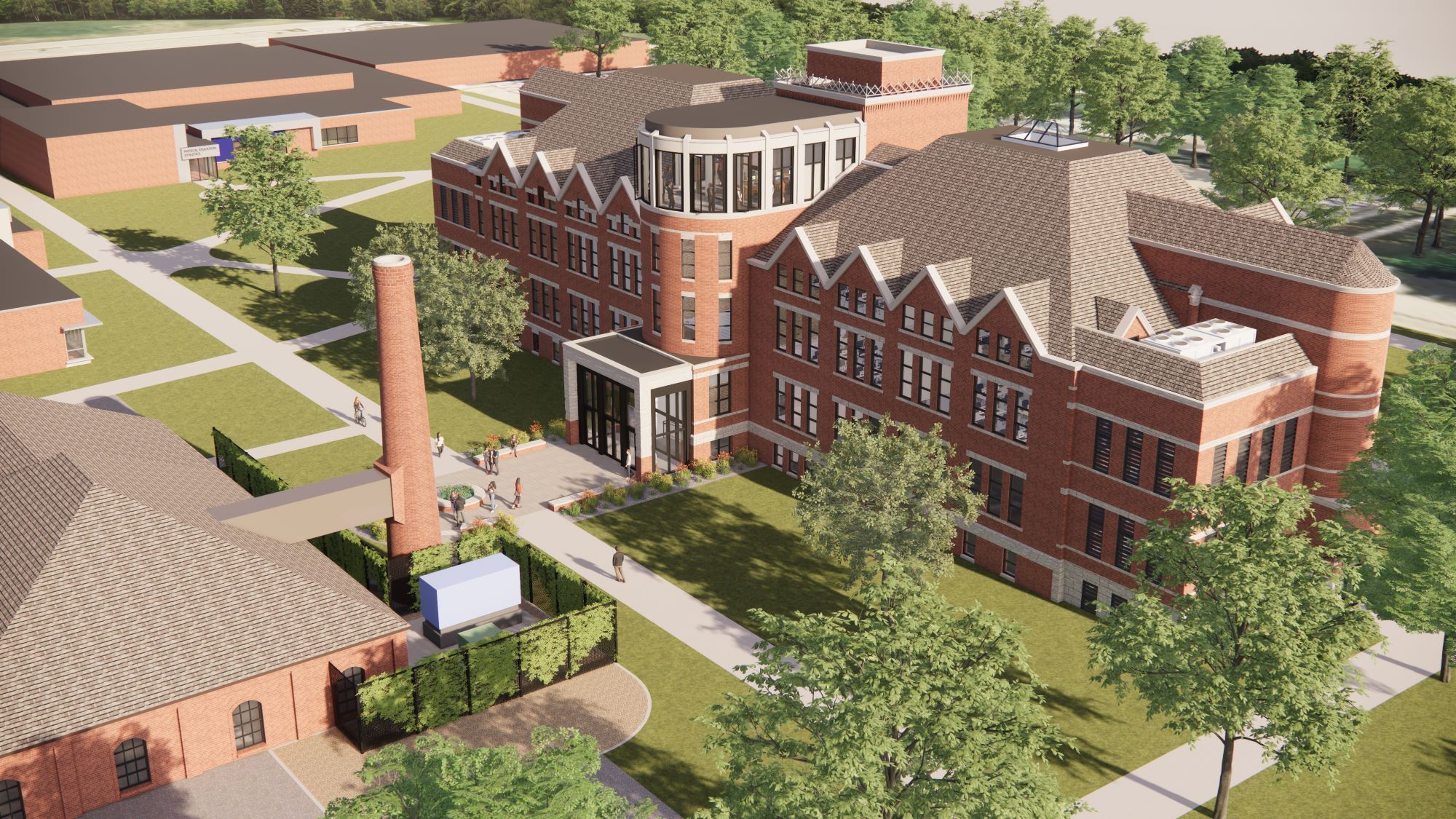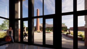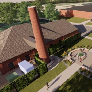 masonry smoke stack will connect to a new north plaza and