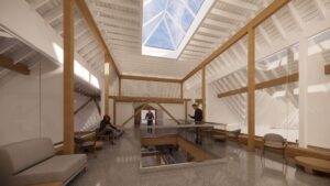 These timber trusses are currently hidden in