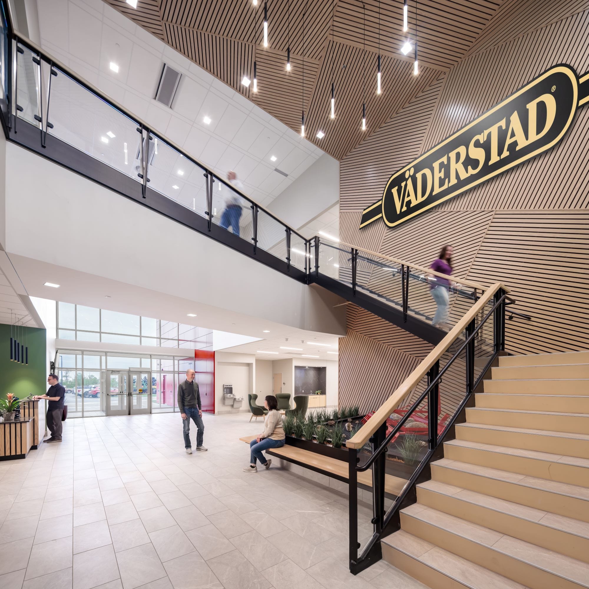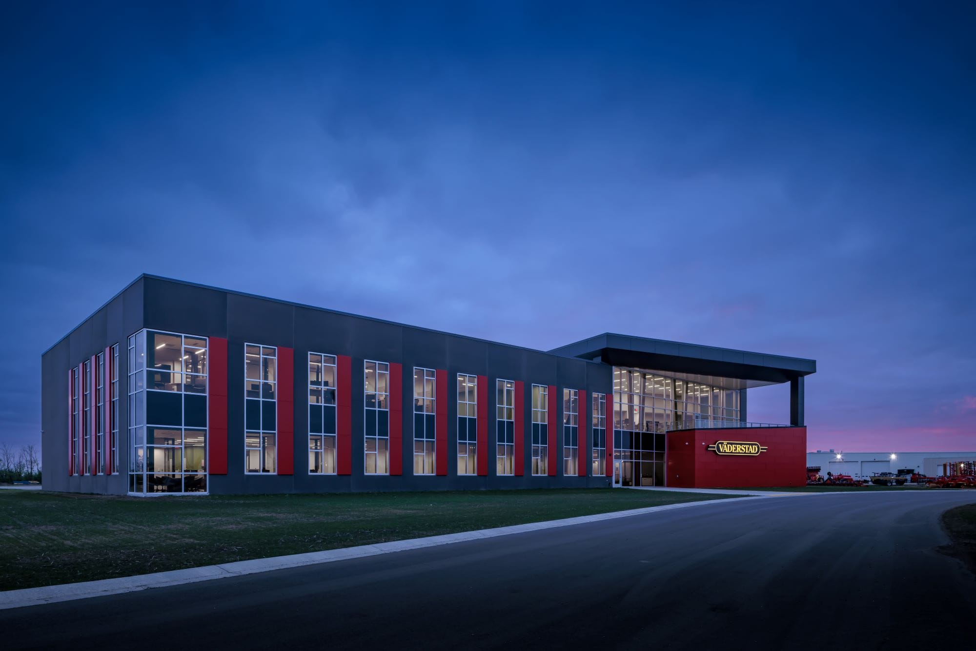 Sweden-based Väderstad, one of the world’s leading companies in tillage, seeding and planting, is expanding its U.S. footprint with a new state of the art multi-functional facility at its U.S. headquarters in Wahpeton, ND. Wanting a strong presence in the community along with providing a facility that reflects their core values and quality design principles inside and out, Väderstad engaged the services of Foss Architecture + Interiors to design a facility that would complement and enhance their branding principles.